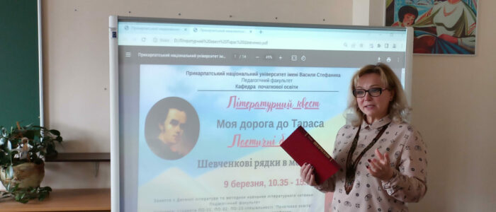 Літературний квест “Моя дорога до Тараса” й Поетичні батли “Шевченкові рядки в моєму серці” у день народження національного пророка з другокурсниками спеціальності “Початкова освіта” на Педагогічному факультеті Прикарпатського національного університету імені Василя Стефаника провела докторка філологічних наук, професорка кафедри початкової освіти Тетяна Качак.