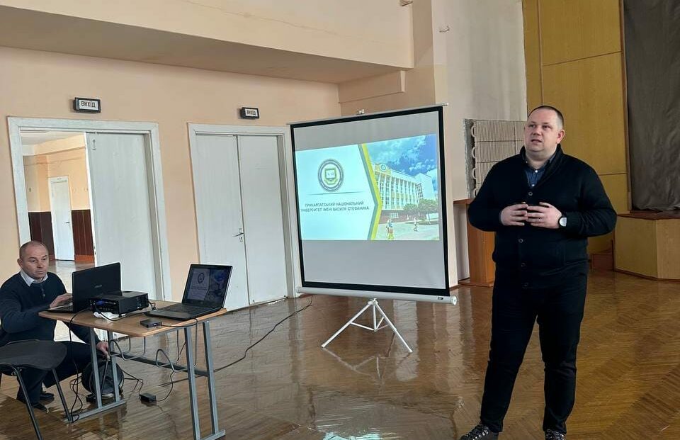 На початку зустрічі відповідальний секретар Приймальної комісії Прикарпатського національного університету імені Василя Стефаника Іван Іванович Плець ознайомив  присутніх зі структурою університету та освітніми програмами, повідомив про величезний потенціал університету та його значний, позитивний вплив на розвиток Івано-Франківського регіону; про високі показники університету у різних рейтингах, у тому числі і деяких міжнародних; про міжнародну та грантову діяльність університету; про значну наявність державних місць в університеті; про різні стипендії найактивнішим студентам; про можливості державного фінансування для успішних контрактників, що є цьогорічною новинкою.