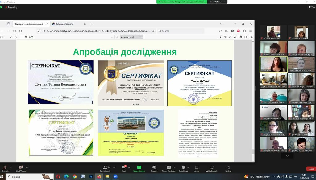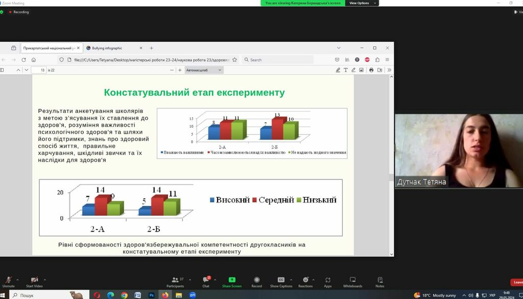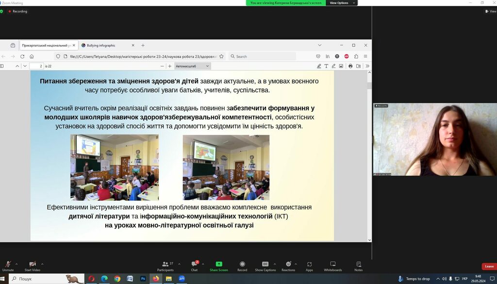 Магістрантка Тетяна Дутчак презентувала ґрунтовне й актуальне наукове дослідження на тему «Формування здоров’язбережувальної компетентності молодших школярів на уроках мовно-літературної освітньої галузі засобами інформаційних технологій», виконане під керівництвом докторки філологічних наук, професорки кафедри початкової освіти Тетяни Качак.