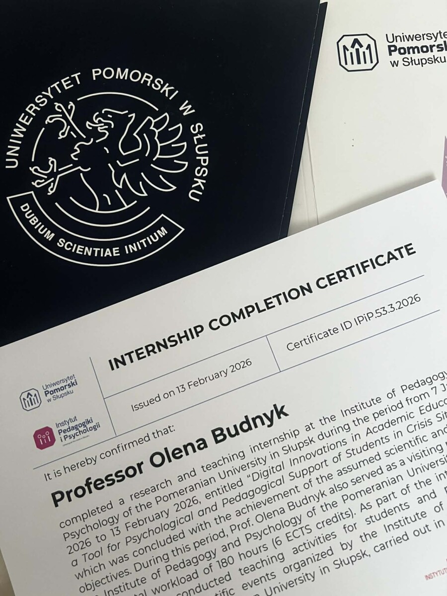 Професорка кафедри початкової освіти та освітніх інновацій, директорка Центру інноваційних освітніх технологій «СNU EcoSystem» Олена Будник успішно пройшла науково-дидактичне стажування у Поморському університеті в Слупську (Польща), яке проходило з 07 січня по 13 лютого 2026 р. у рамках програми Visiting Professor (у змішаному форматі).